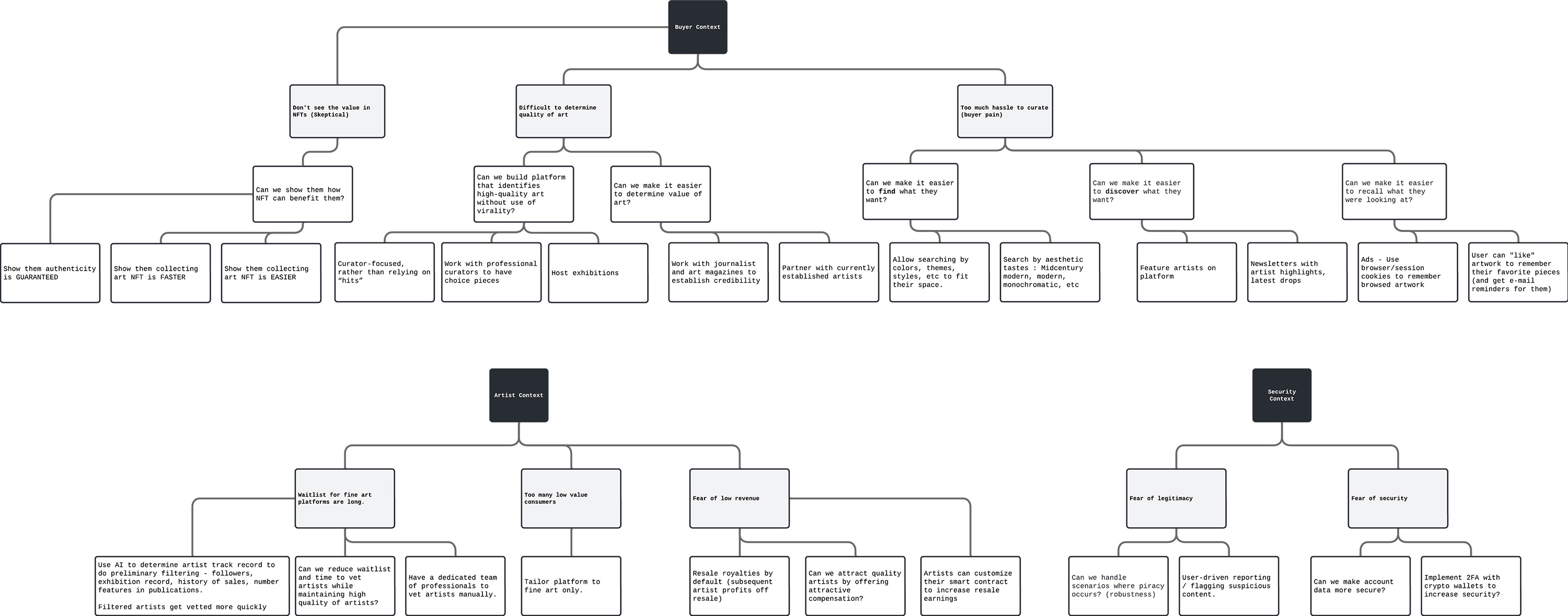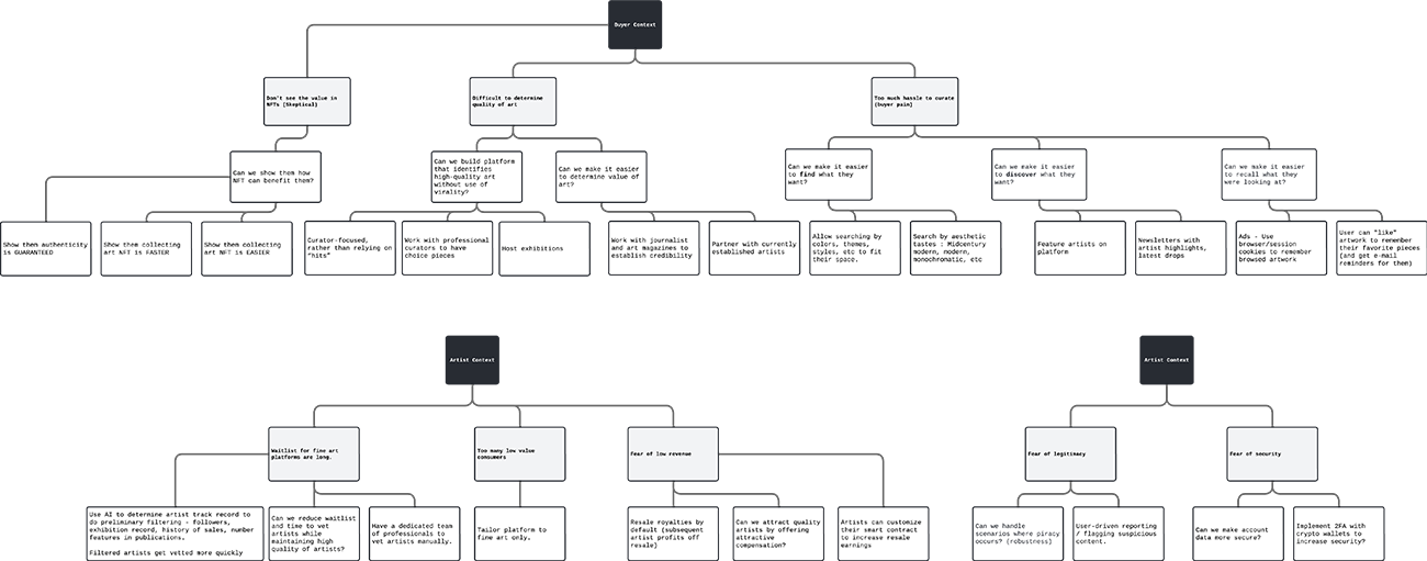 To identify our problems, we first needed to figure out how people buy/sell art and NFTs.